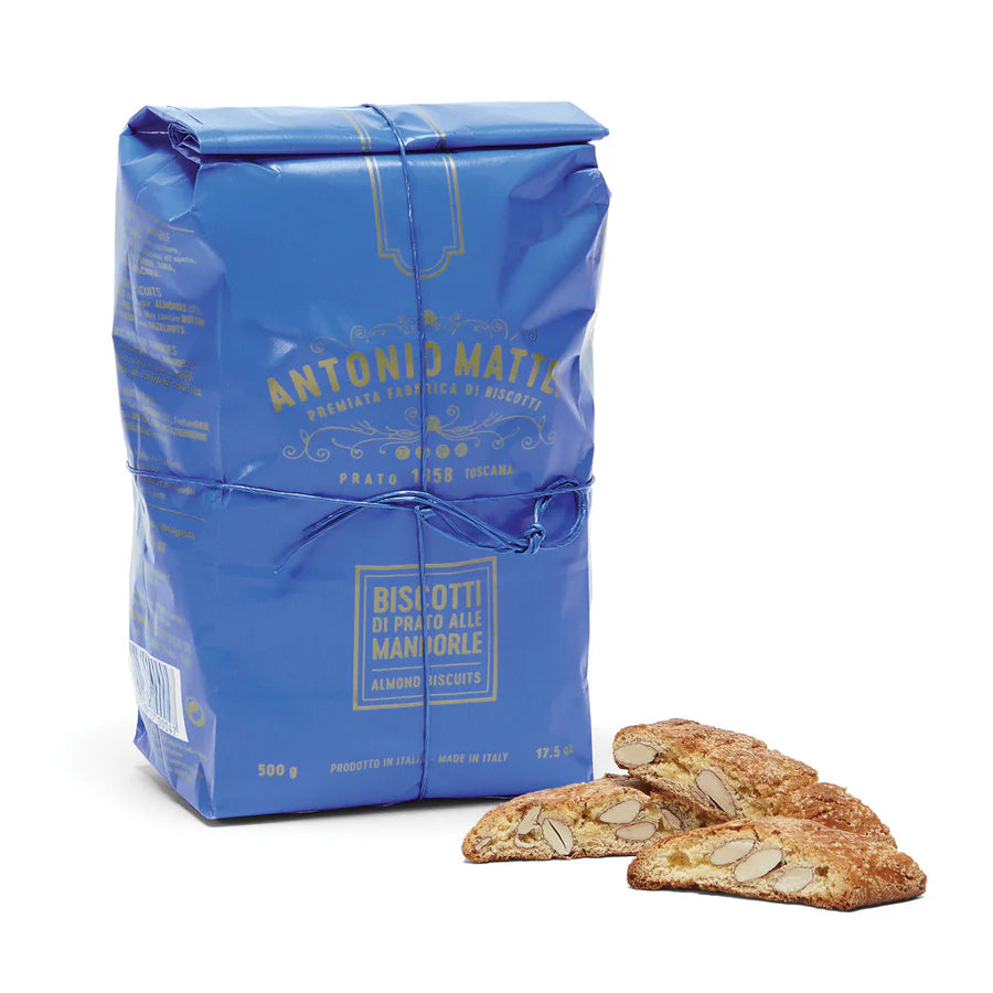 Since 1858, Antonio Mattei has been crafting the finest cantuccini in Prato, Tuscany. These classic almond biscotti are baked twice for a perfect crunch, ideal for dipping in Vin Santo or espresso.
